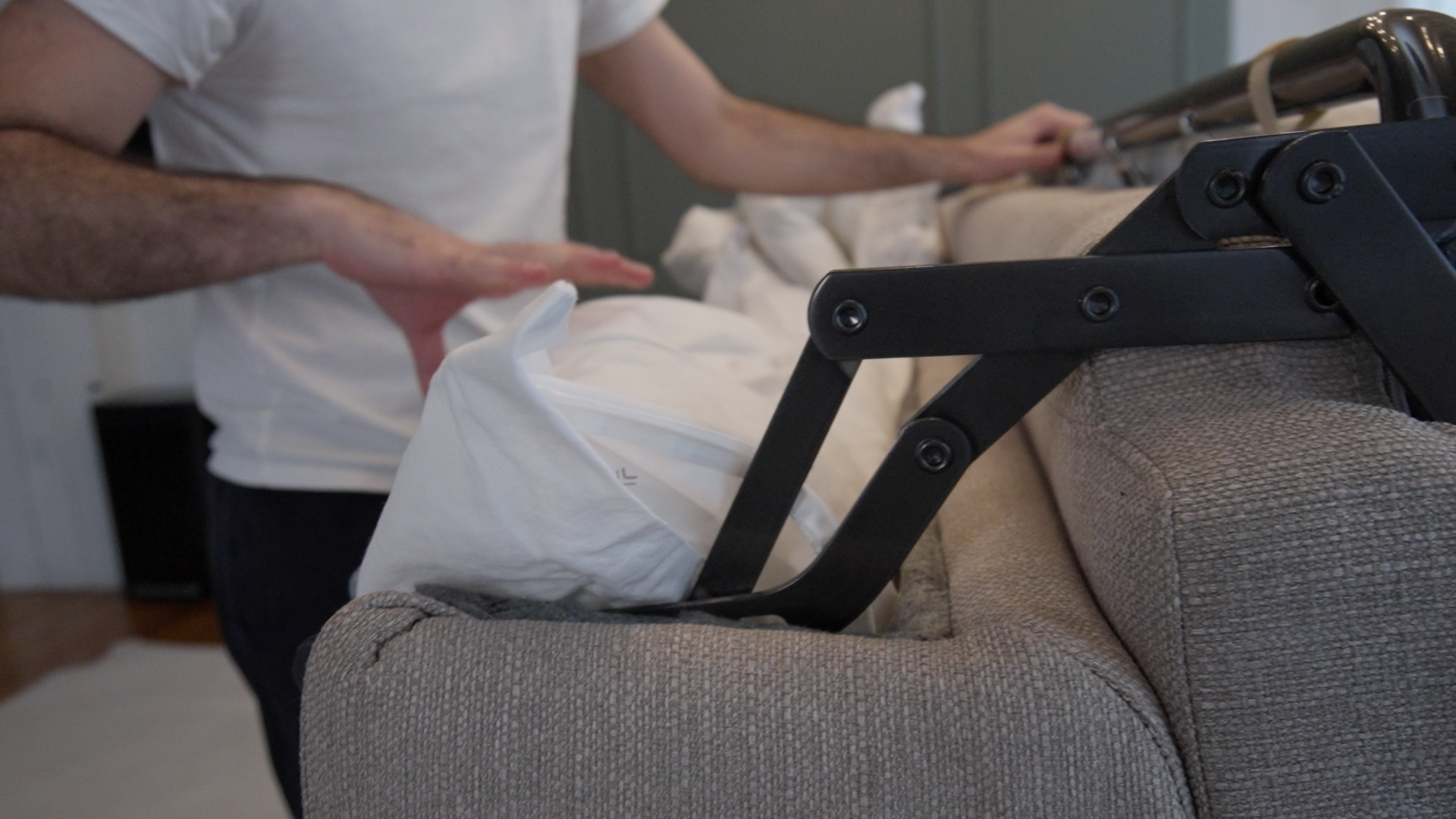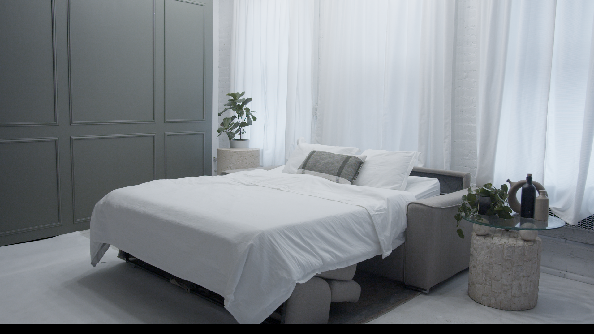 The Chloë sofa and bed is a modern, stylish sofa whose fully adjustable headrests offer luxury and comfort. Matera’s patented sofa & bed mechanism means the Chloë transforms from sofa to bed and back with a simple pull. With plenty of storage for pillows and blankets, the Chloë is a comfortable couch by day and a high quality bed by night.